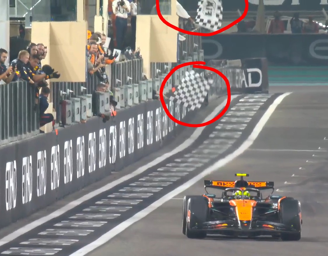 I also wanted to know when those double chequered flags started, so I had a look at both 2025 and 2024 race finishes, and as far as I could determine, the first time this occurred was at Abu Dhabi 2024. Every other race in 2024 looked to only have the official flag.