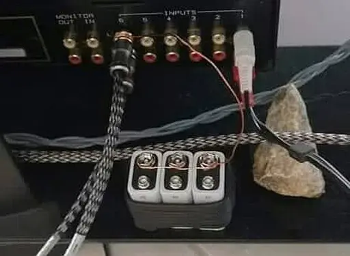 This is all wrong! You can’t just connect the batteries like in the photo. You have to put the batteries on rose quartz! You will hear an amazing improvement! It is not good to put them next to each other, they must be in contact with the crystal!