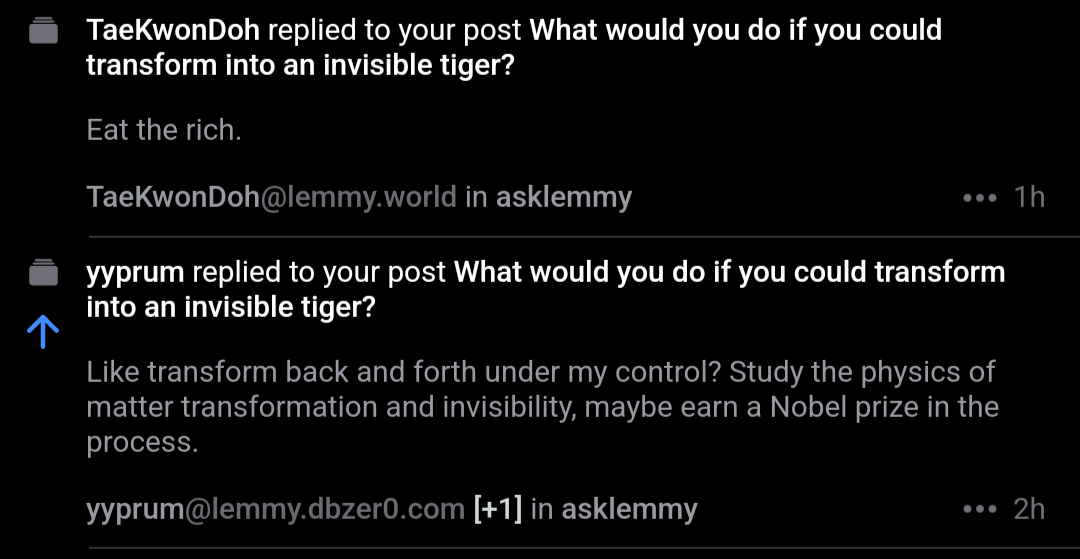 My favourite comment on that post was “probably transform into an invisible tiger”
