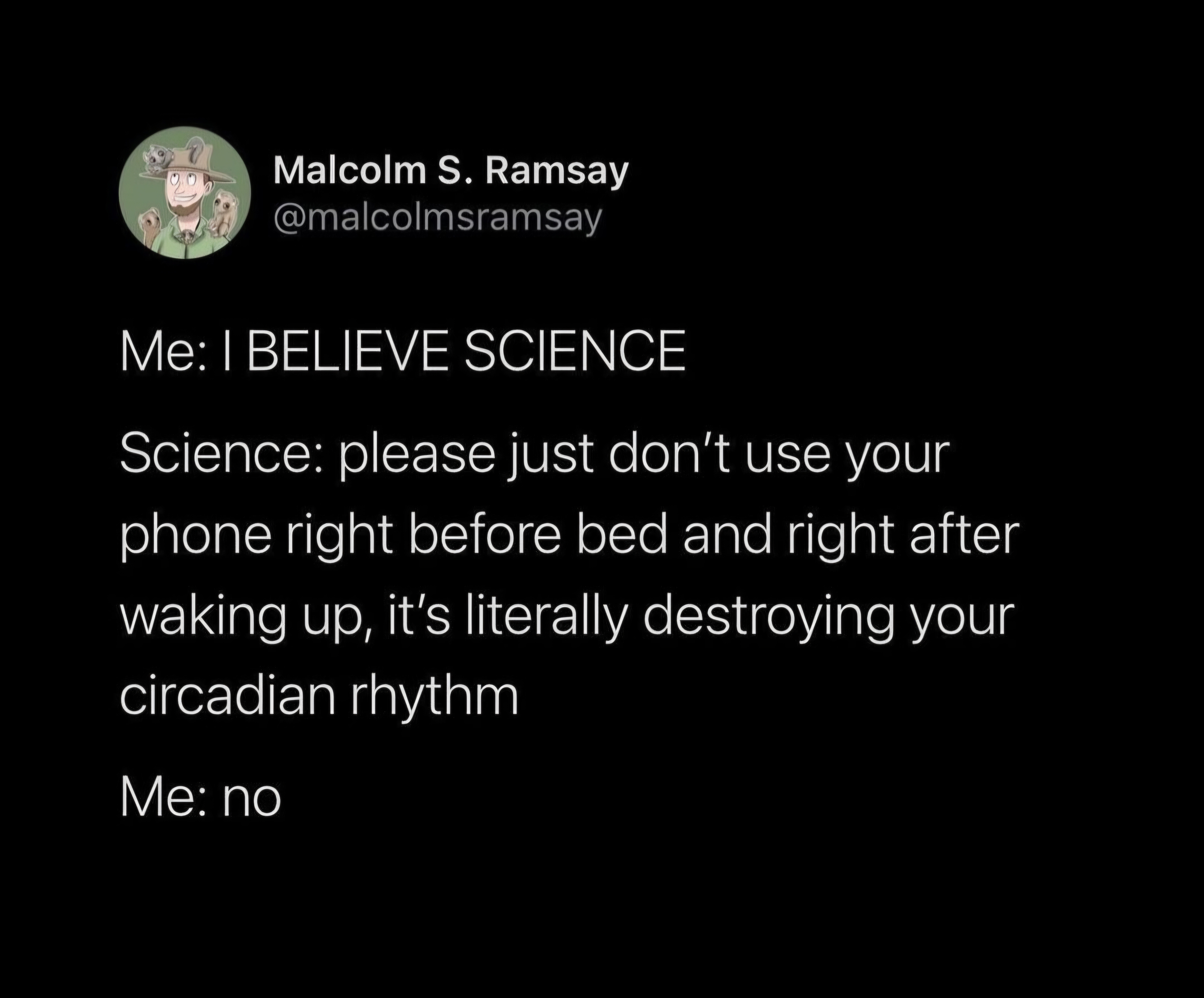 The effect of circadian rythm in mammals doesn’t really have the scientific evidence people think it does. Most people, even highly educated ones, are unwittingly creationists.